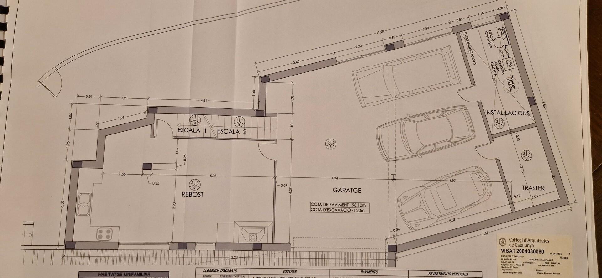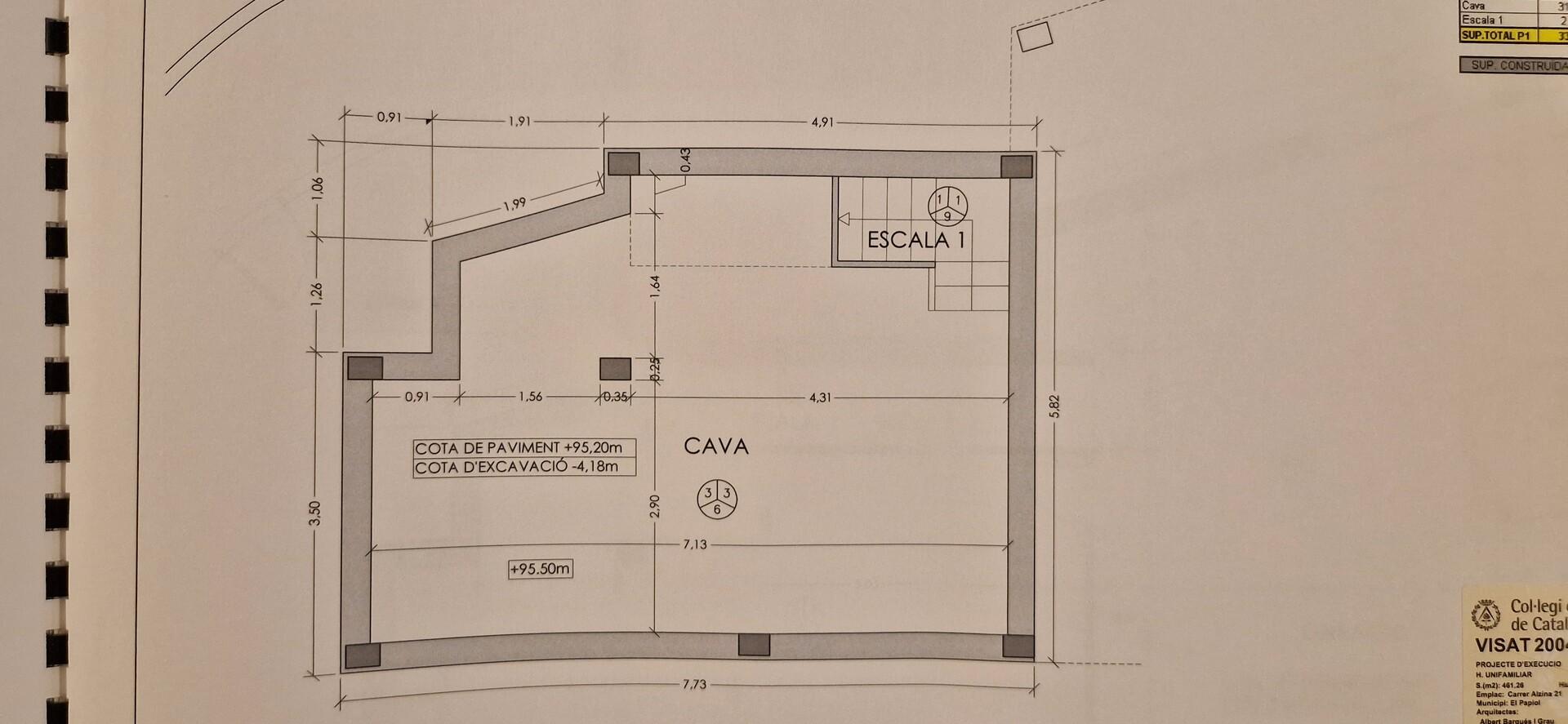 Planta soterrani 141 m²: Zona de garatge per a més de 3 cotxes, com que és molt àmplia es pot fer una zona de gimnàs ja que té ventilació amb finestres altes i hi ha un lavabo. A la mateixa planta hi ha la sala de màquines i un traster. Des d´aquesta planta s´accedeix al celler de 41 m² per emmagatzemar vi i fins i tot tenir un espai de tast.