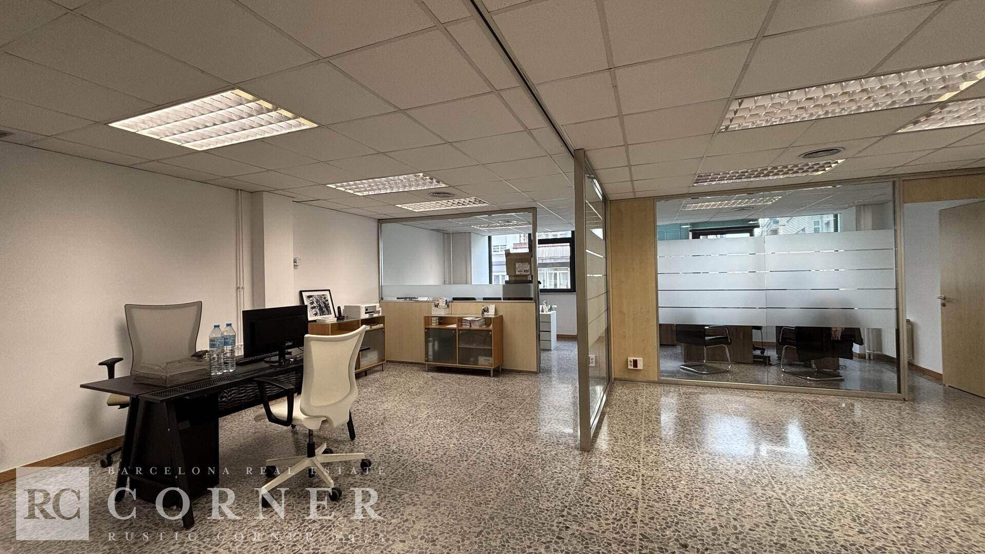 Distribución: Planta diáfana, dividida en 8 estancias de trabajo, tres despachos independientes exteriores a calle, recepción de entrada, zona office y 2 aseos.