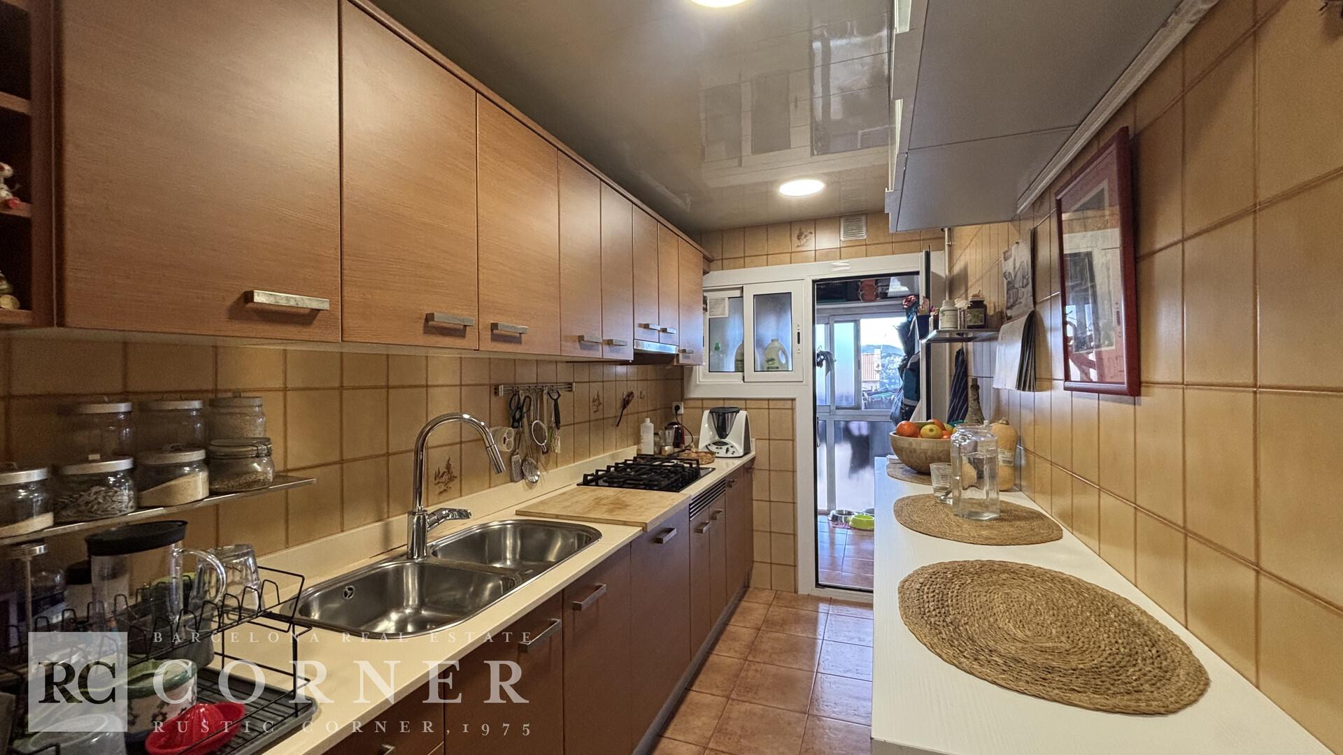 The living-dining room is spacious and opens onto a sunny and quiet terrace. All rooms are exterior, ensuring natural light and ventilation. The separate kitchen connects to a practical laundry room and outdoor drying area. The exterior carpentry is aluminum, heating is provided by natural gas radiators, and air conditioning is provided by split units in the living room and master bedroom.