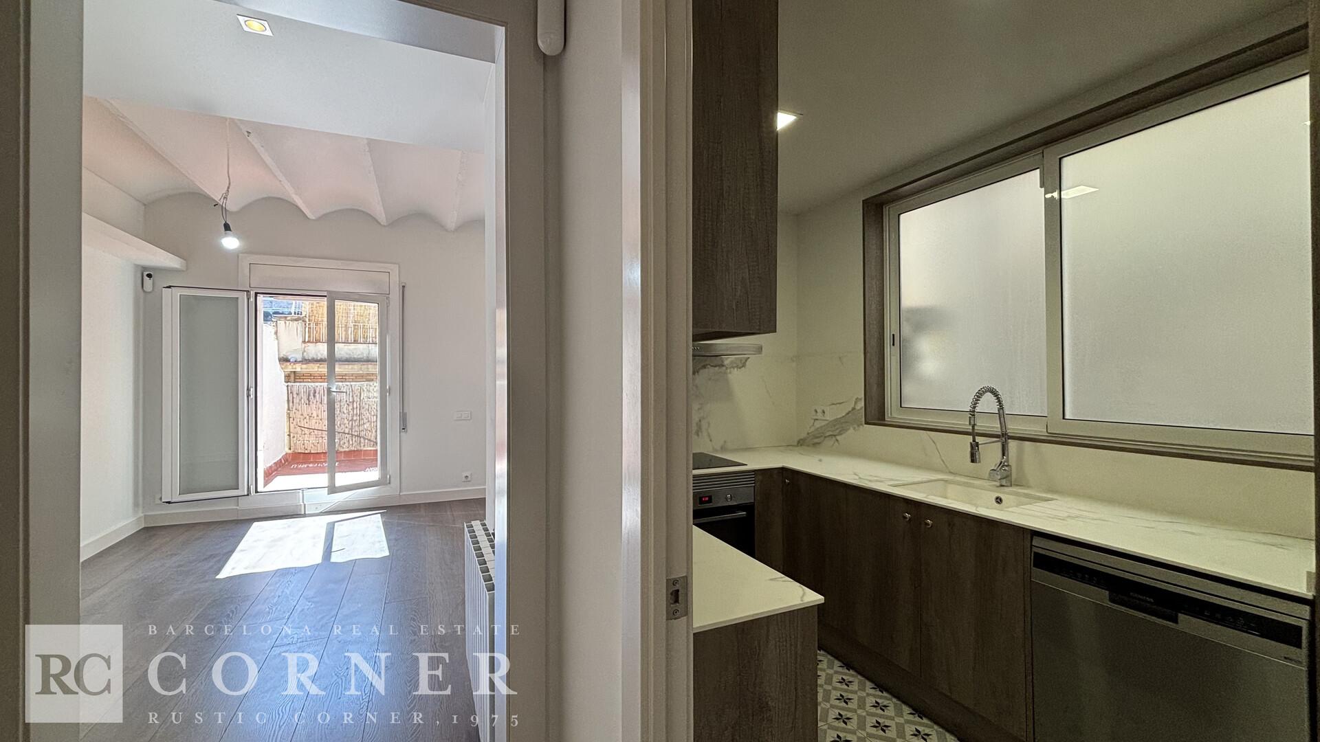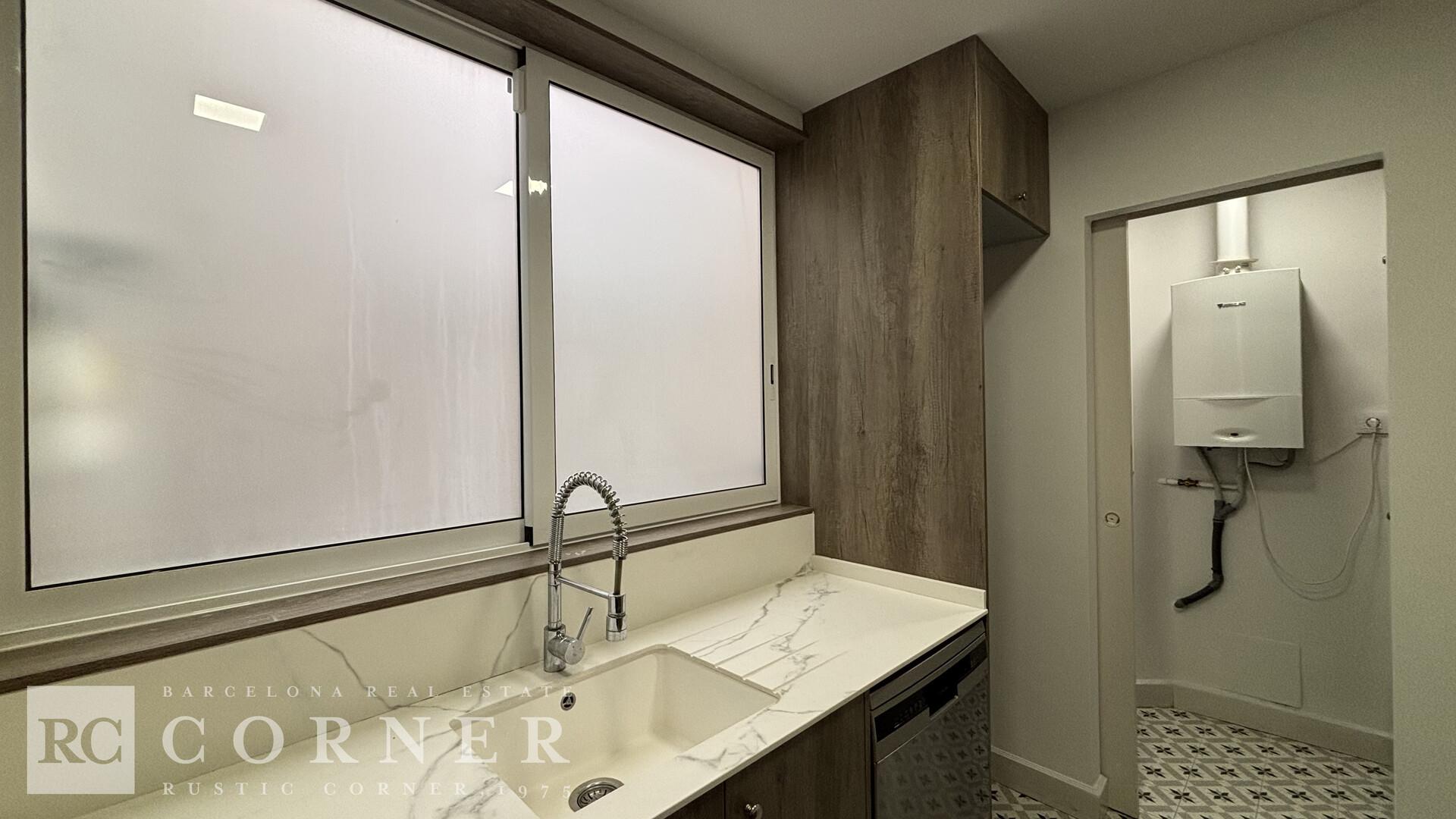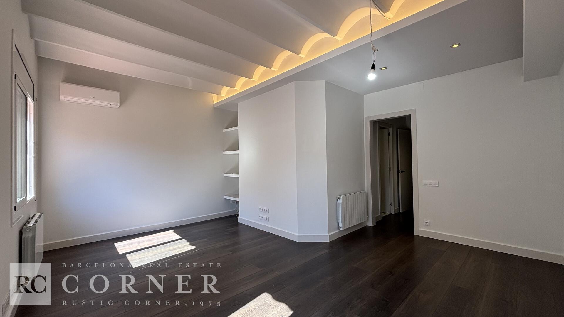 Observaciones: La propiedad se reformó integralmente hace 5 años, destaca por una distribución excelente y funcional. Su salón-comedor tiene unos techos de 3 metros de altura con la tradicional "Volta Catalana" y ofrece acceso directo a una terraza soleada y disfrutable. Al tratarse de un ático, la vivienda garantiza luz natural constante en todas sus estancias. Cocina independiente con grandes ventanales, y un práctico lavadero anexo. La zona de noche cuenta con tres dormitorios: dos dobles (incluyendo una suite con vestidor y baño), uno habitación individual. Los dos primeros son exteriores a un patio de manzana, garantizando silencio y descanso. Dos baños completos con plato de ducha.